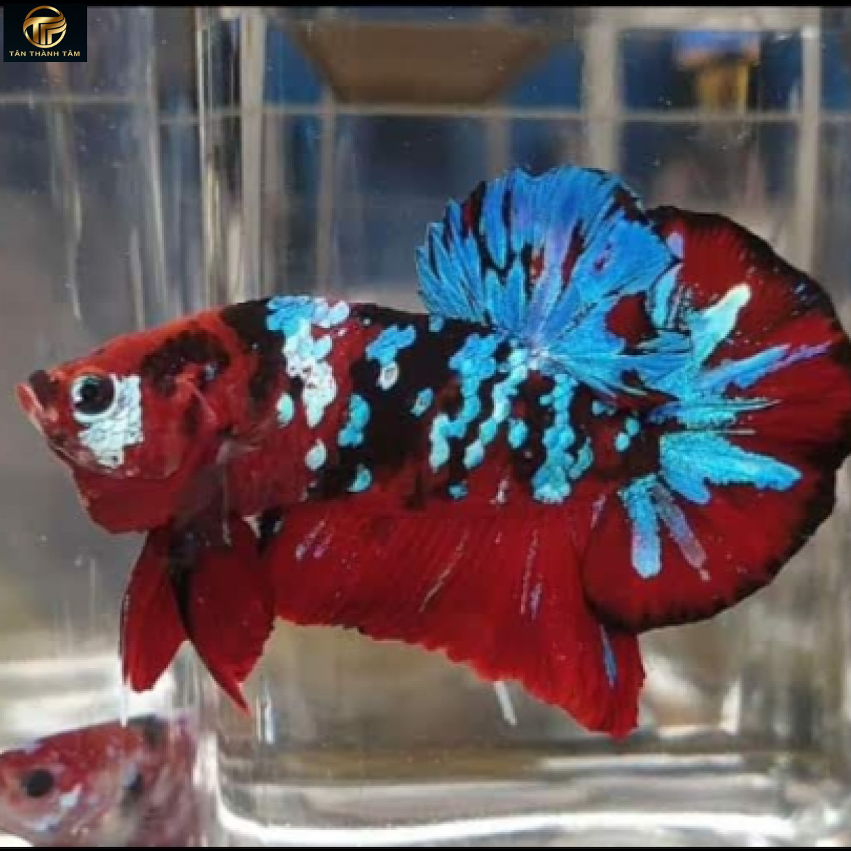 -Cá thuần, màu chuẩn, Cá Betta Koi đuôi ngắn màu đỏ, vảy chấm trắng hoặc xanh.